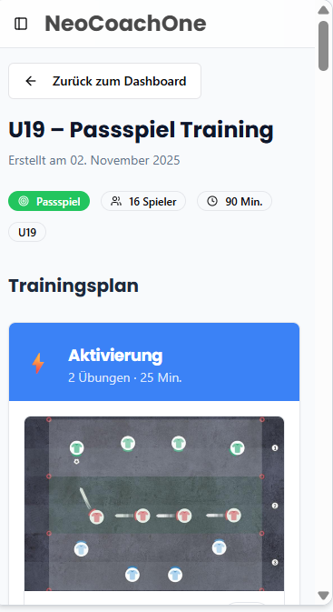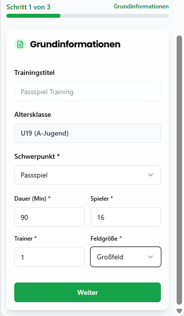 Von Jugendmannschaften bis hin zu aktiven Teams, vom Breitensport bis zum Nachwuchsleistungszentrum – unser System berücksichtigt Altersklasse, Leistungsniveau, Trainingsziele, Schwerpunkte und verfügbare Spieleranzahl.